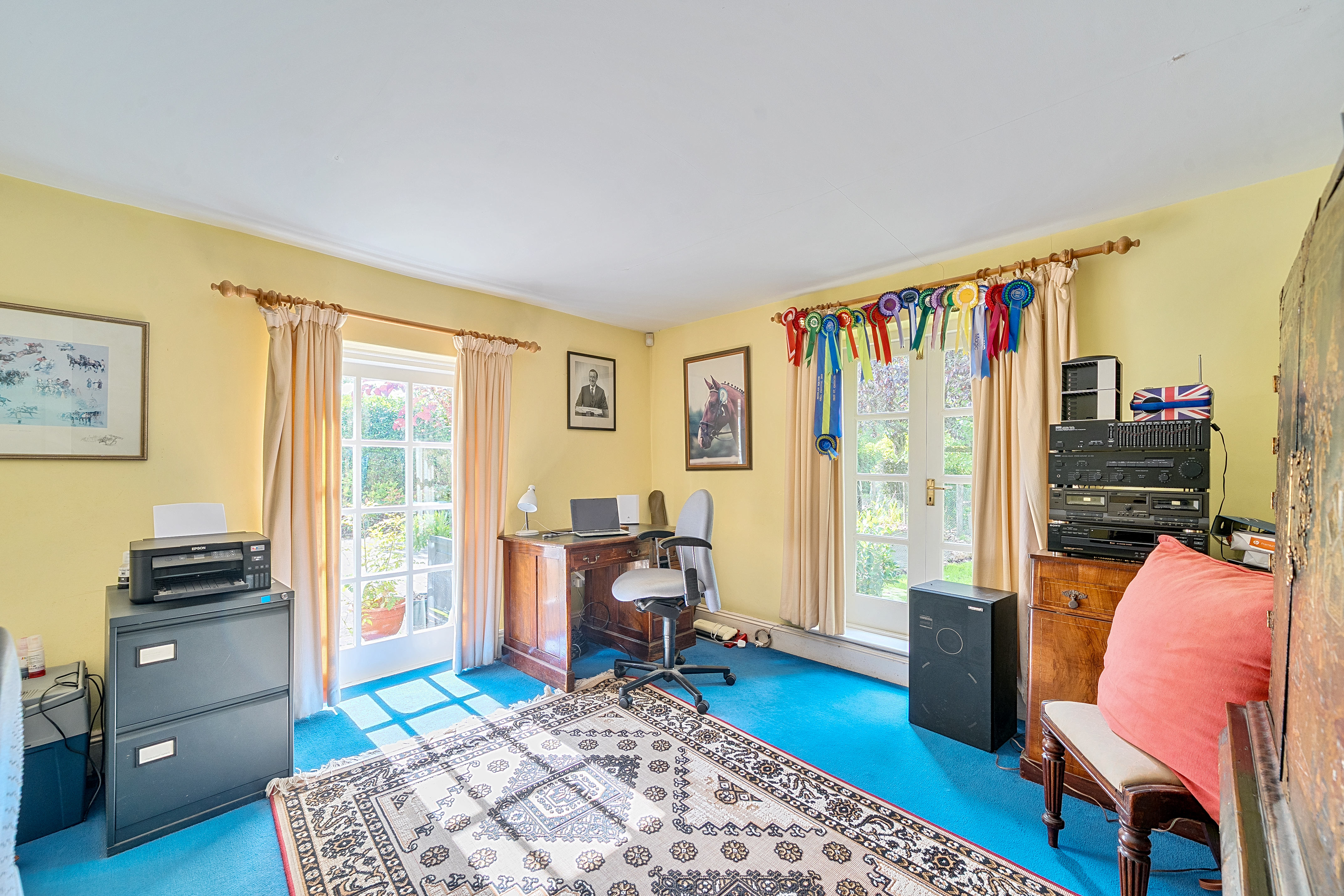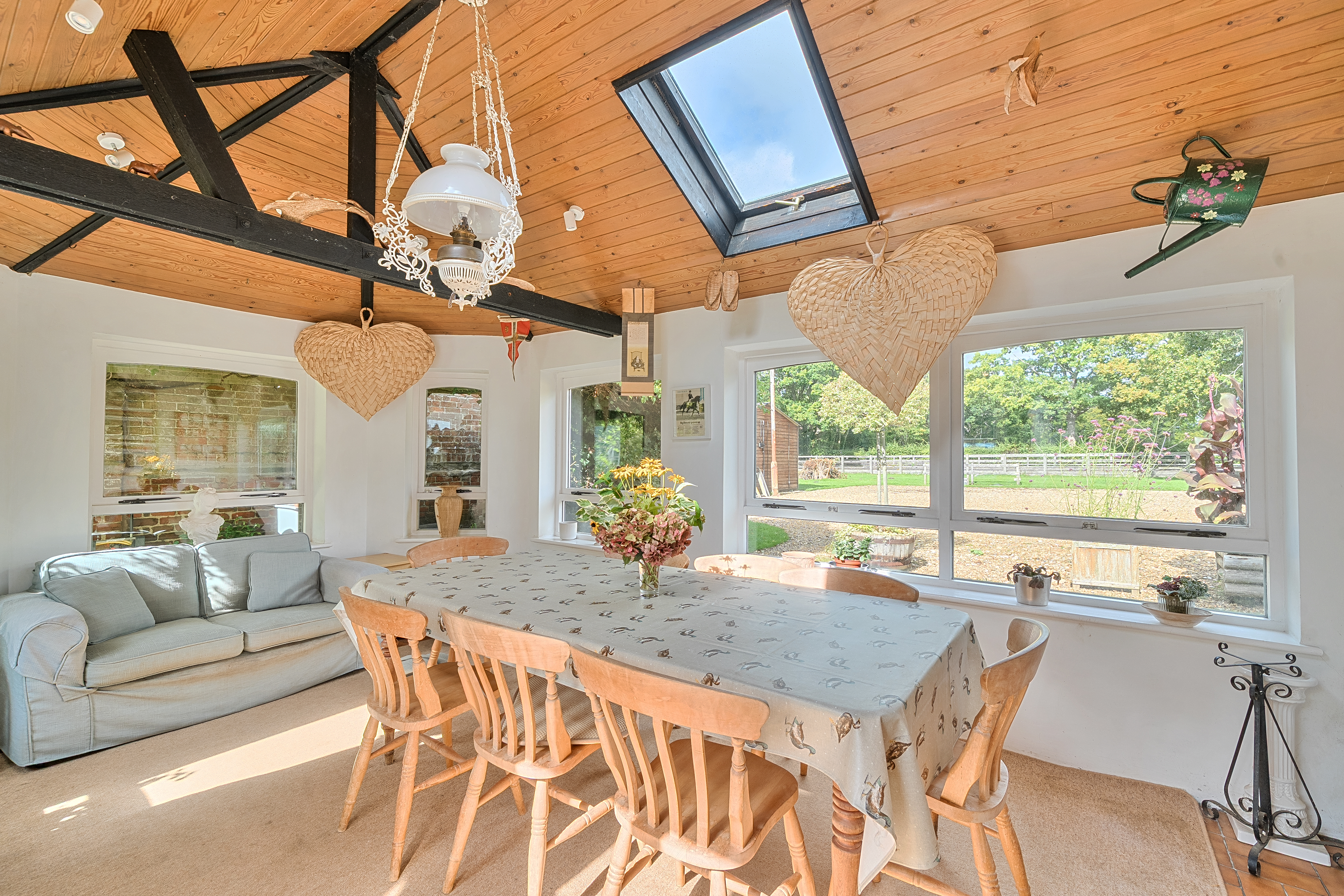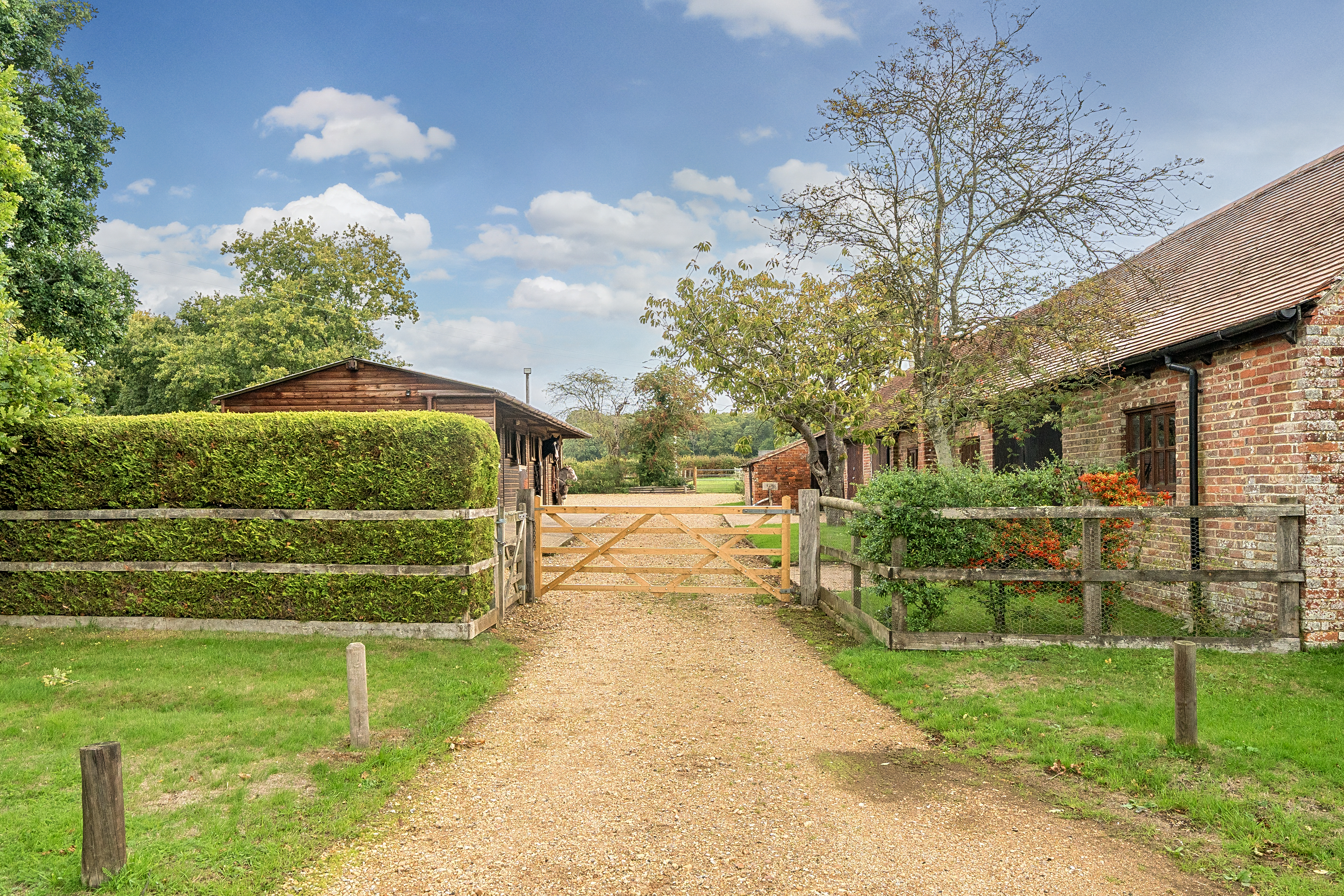 Steeped in history and timeless charm, this magnificent Grade II listed farmhouse sits within 2.5 acres of beautifully landscaped grounds in a highly sought-after rural setting. Blending heritage with elegance, the property is enriched by formal gardens, extensive outbuildings, exceptional equestrian facilities, and an attached three-bedroom cottage. For those requiring additional space, a further 2.4 acres of grazing land is available to lease directly opposite the house.