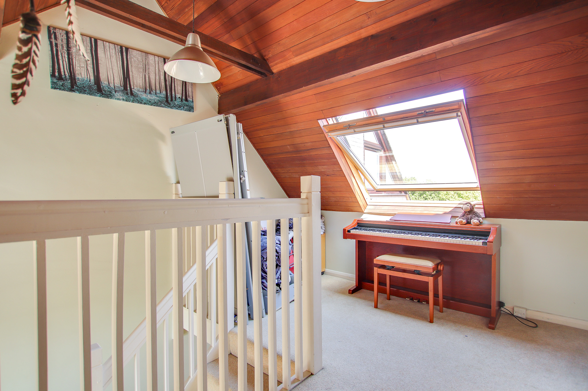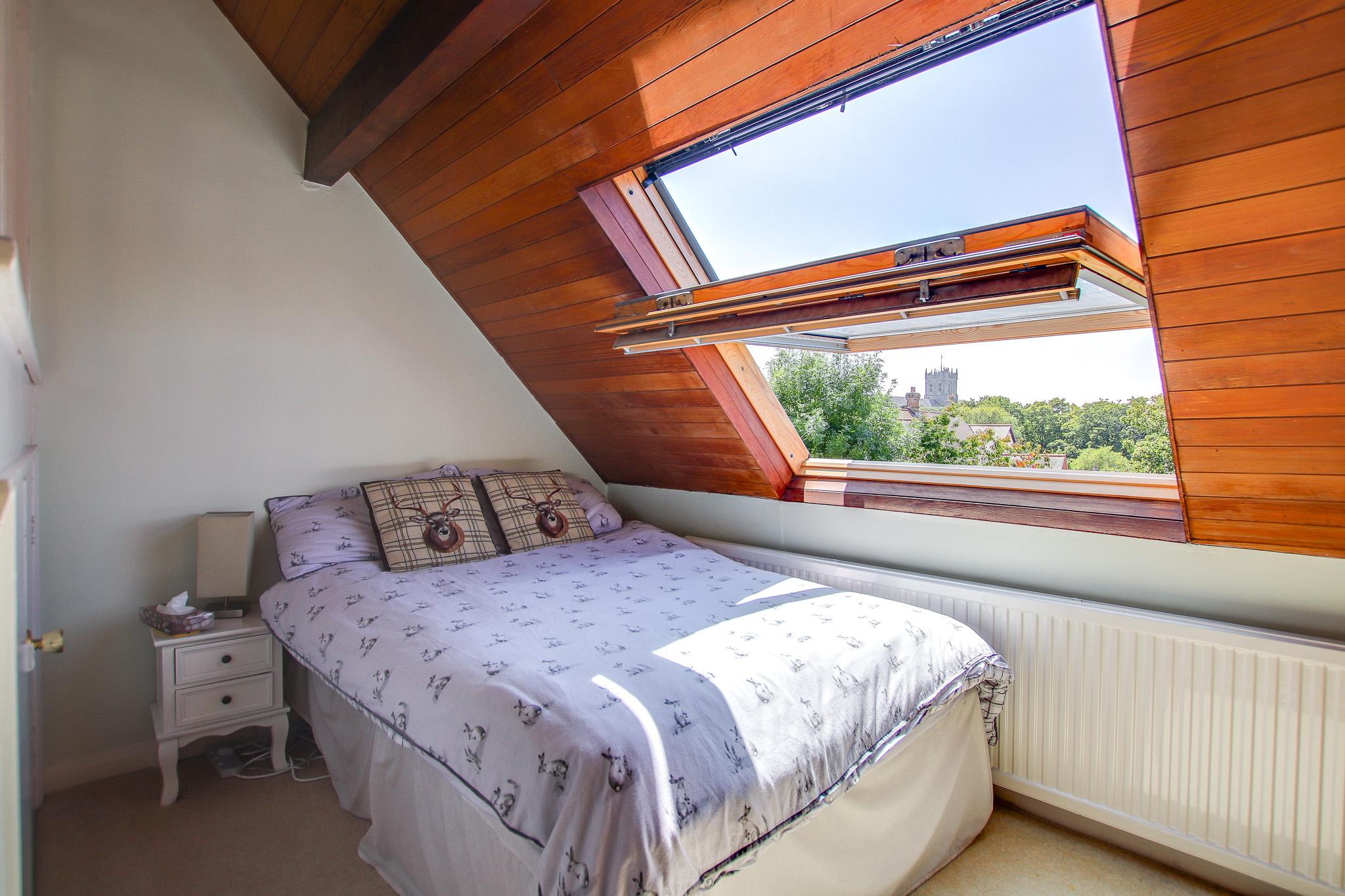At the very top of the home, you’ll find a unique and characterful room with a striking wooden apex ceiling and split across two levels. The lower level features a cosy double bedroom with a west-facing Velux window offering breathtaking views over the historic Christchurch Priory, which has stood for over 1,300 years. Up a few steps, the upper level reveals a second Velux window framing serene views of the River Avon. Currently, the space includes a large storage area housing the hot water tank, but there’s potential to reconfigure this area to suit your needs.