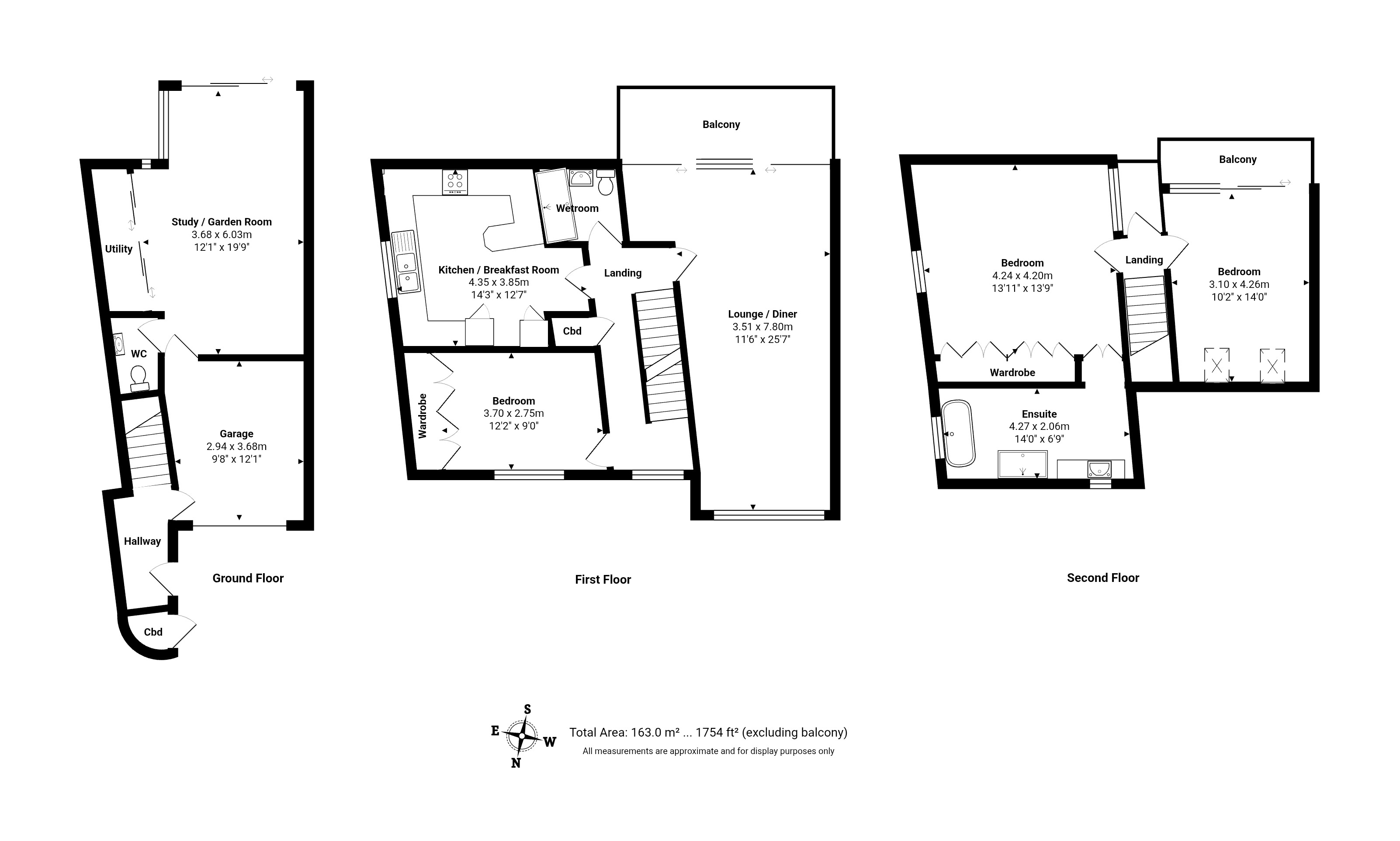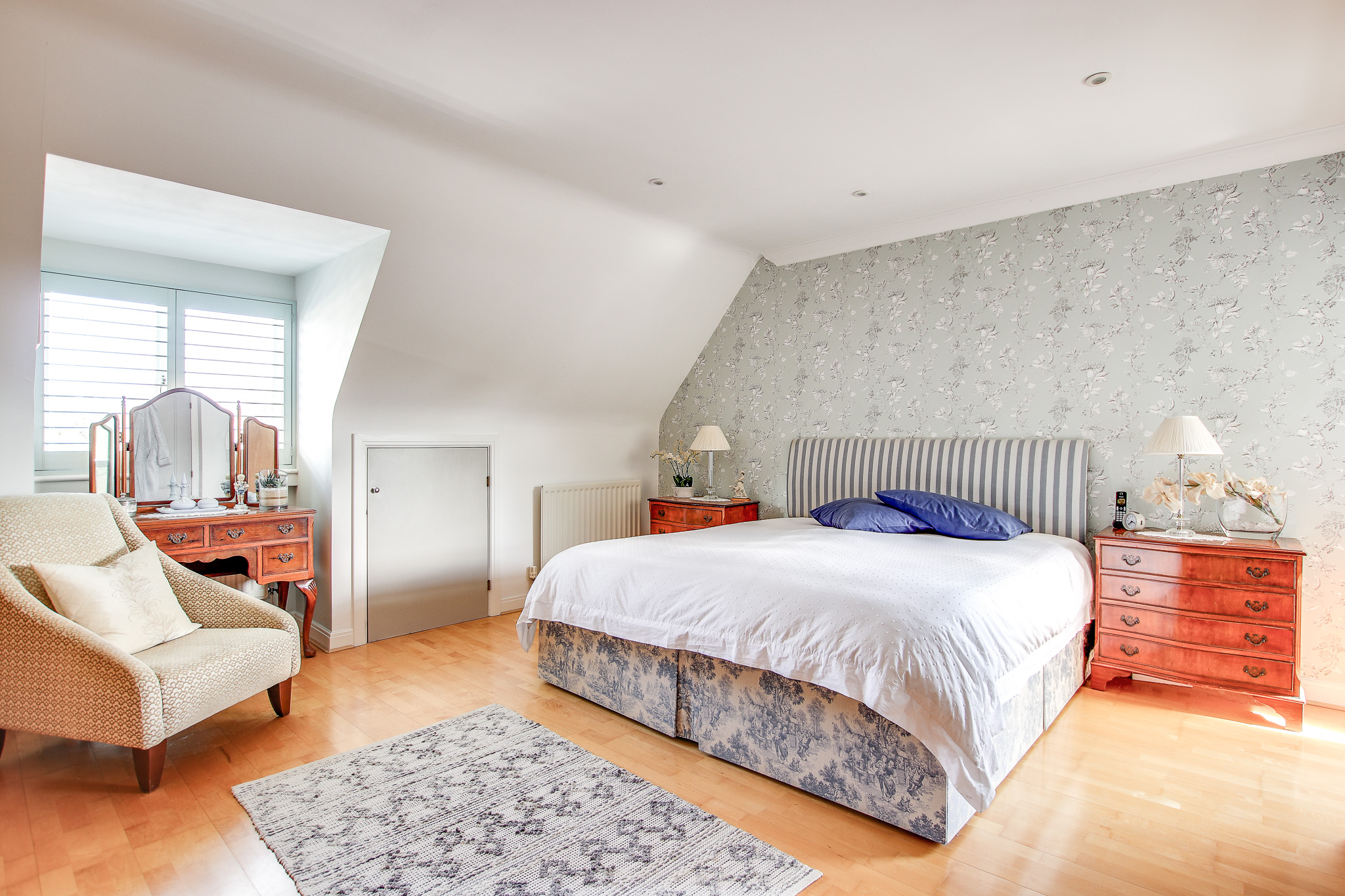 A further staircase leads from the hallway to the second floor, where the principal bedrooms are located.