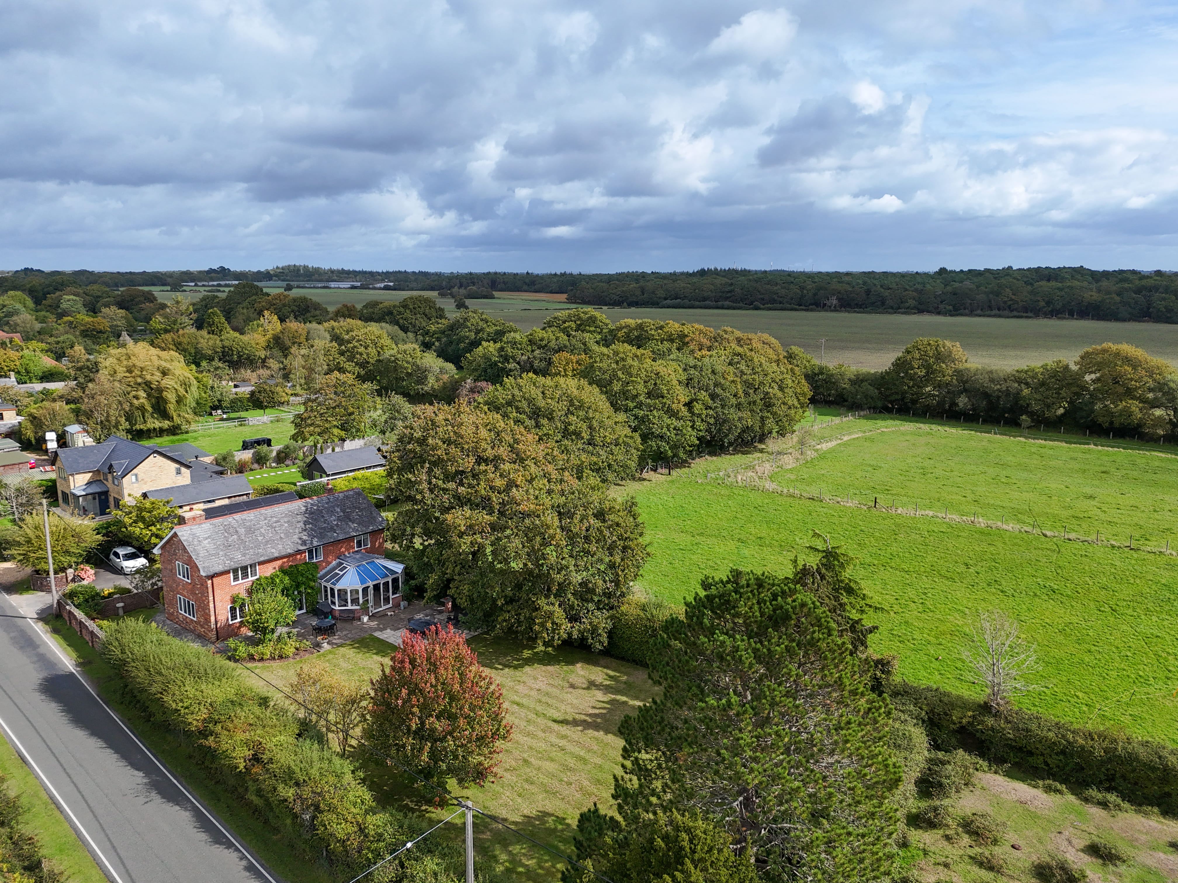 A charming forest-fronting house set within this popular village, boasting exceptional views over the surrounding open Forest. Rich in character, with exposed beams and traditional brickwork, the property offers well-proportioned and thoughtfully arranged rooms designed to make the most of the south-facing garden and the sweeping outlook beyond. Outside, the house benefits from ample parking, a garage, and a detached stable block, together with a separate paddock. In all, the grounds extend to approximately 0.6 acres. EPR - D