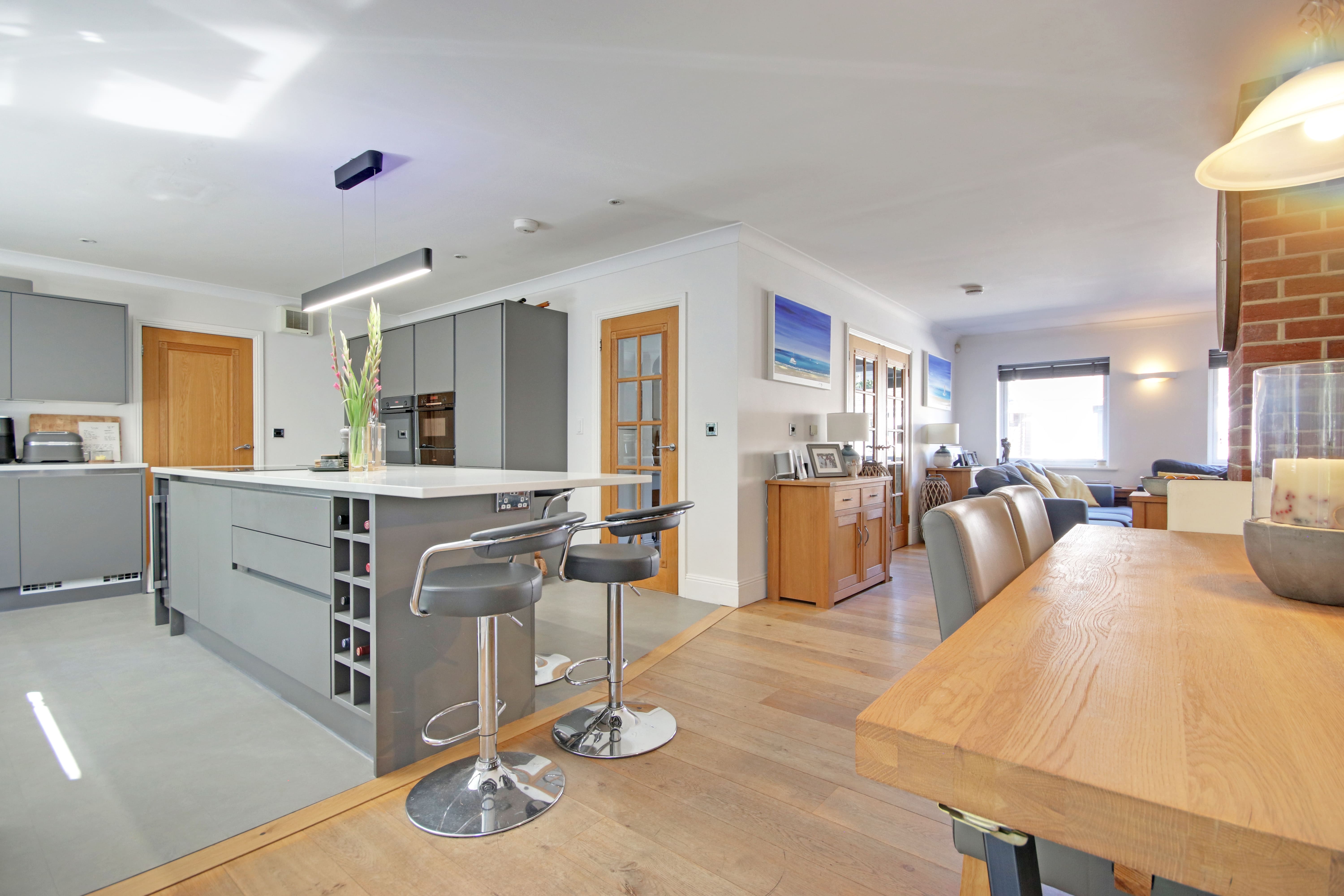A spacious and well planned 5 bedroom, 4 bathroom family home with a detached double garage, studio and gardens. The property is located within walking distance of Milford on Sea where there are safe swimming beaches and the village of Everton. The well-renowned Milford primary school is within a flat 10 minute walk. Keyhaven is also accessible where there are extensive sailing facilities and stunning coastal walks. The bus route to Lymington and the secondary schools is within a 2 minute walk.