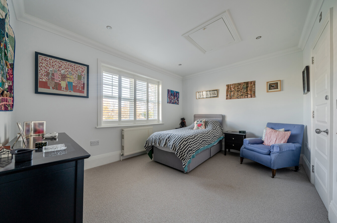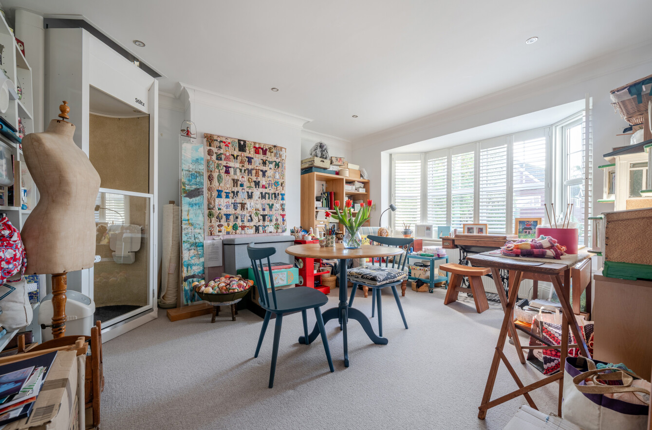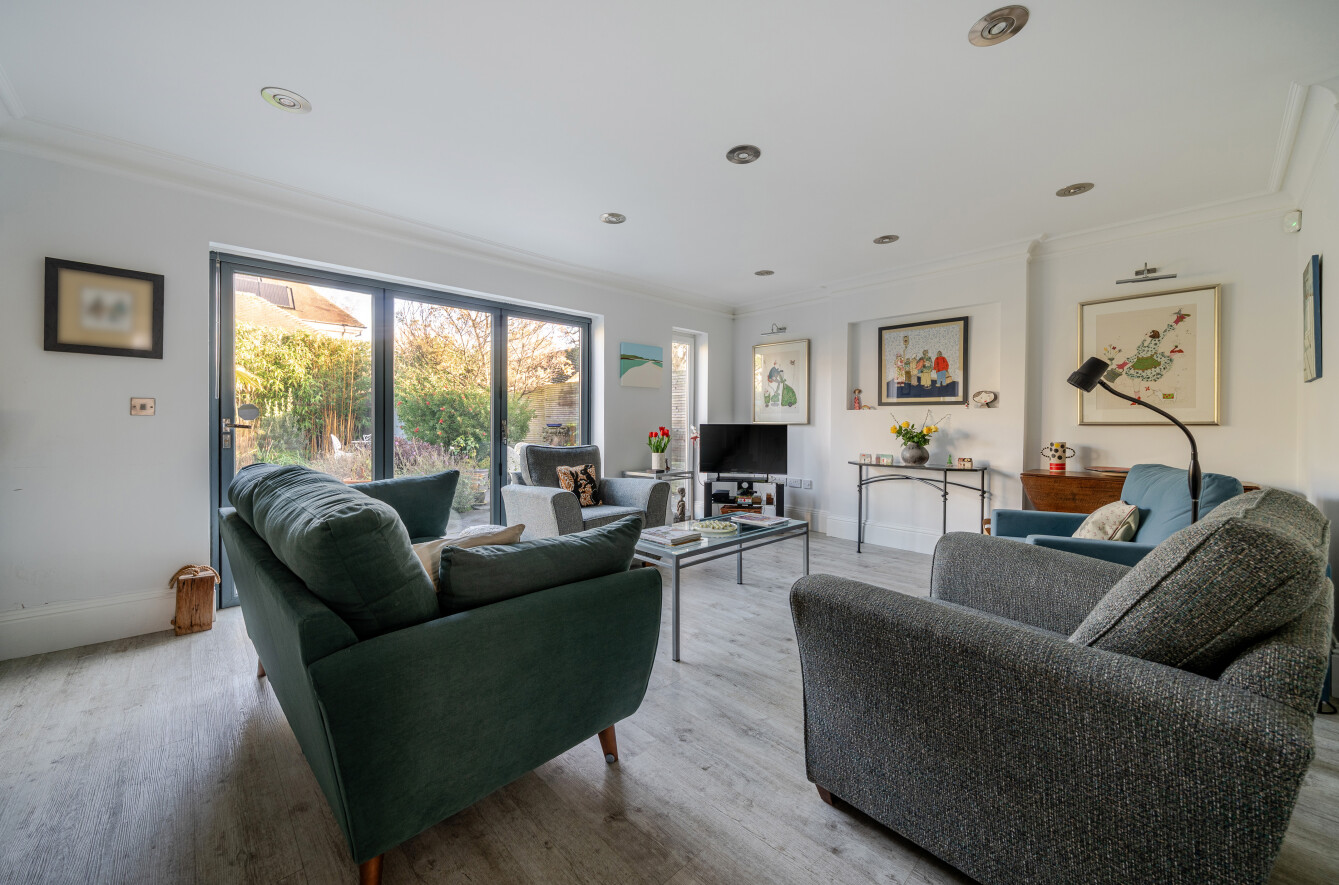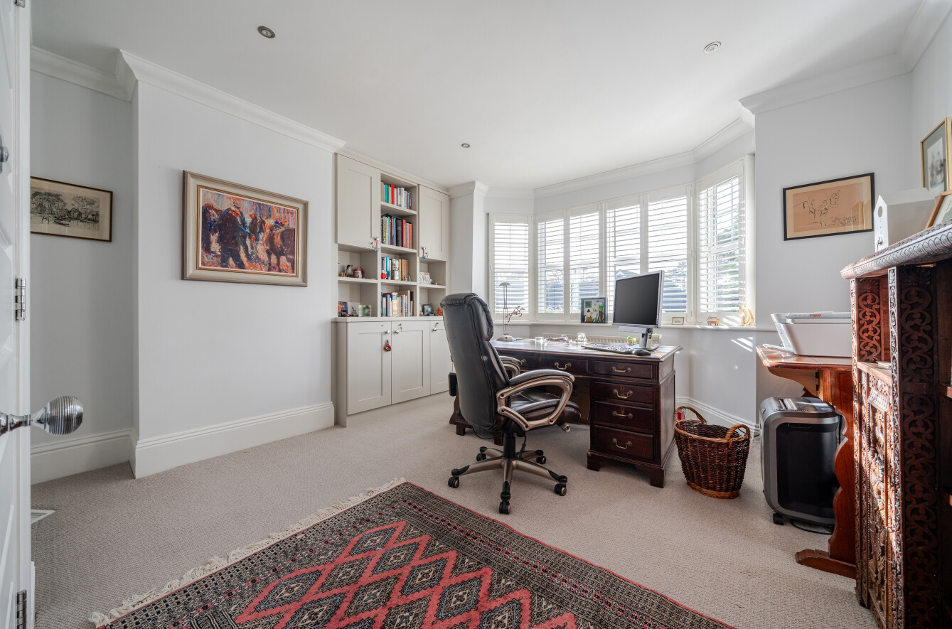The property has been comprehensively improved to seamlessly blend its original character with an array of contemporary features. A standout aspect is the highly flexible arrangement of reception rooms on the ground floor, offering exceptional versatility. The layout lends itself to grand-scale entertaining, while two additional reception rooms provide more intimate spaces ideal for relaxing or enjoying family life. At the heart of the home is a well-appointed kitchen/dining space, fitted with a range of high-quality appliances and forming the central hub of the property. Both the dining room and family room benefit from bi-fold doors opening onto a beautifully landscaped yet manageable rear garden. The dining room is particularly impressive, featuring contemporary glazed corner doors and a striking vaulted atrium ceiling that floods the space with natural light and effortlessly connects indoors with out. The home features a convenient utility room and a spacious laundry room, providing plenty of extra storage for all your essentials. The first floor offers three generous double bedrooms each served by its own en-suite bathroom and a fourth double bedroom with a lift currently used as a study. The bedroom layout allows the principal suite to be privately positioned, complete with a walk-in dressing room and balcony. All bathrooms are finished to an excellent standard with modern suites, while two retained balconies, accessed from the dressing room and landing, provide attractive rooftop views to the front of the property.