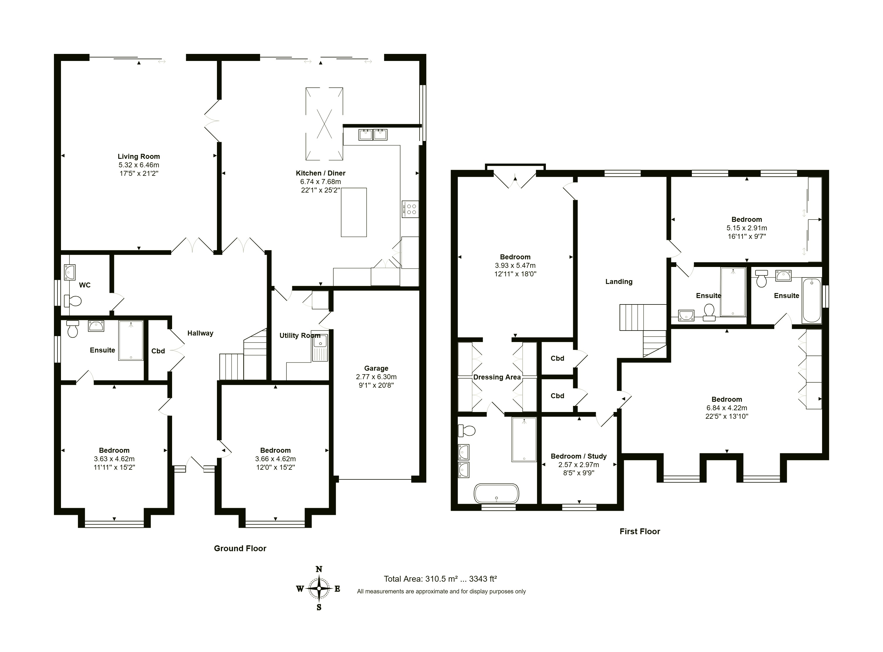 Across the hallway, you’ll find the fifth bedroom: a well-proportioned double room with front aspect and a high-quality en-suite shower room, featuring a large shower, WC, and wash basin – all finished with stylish modern tiling.