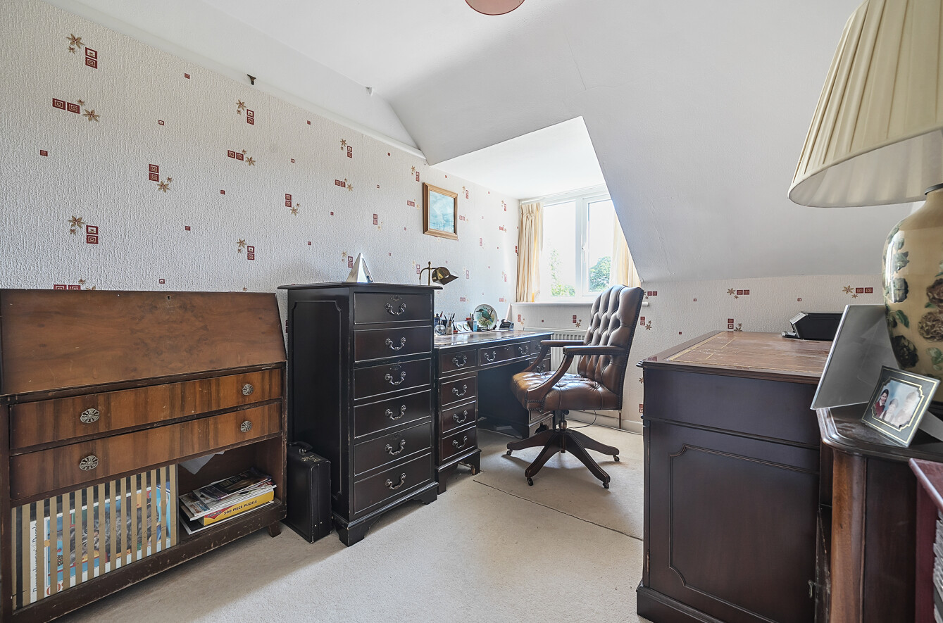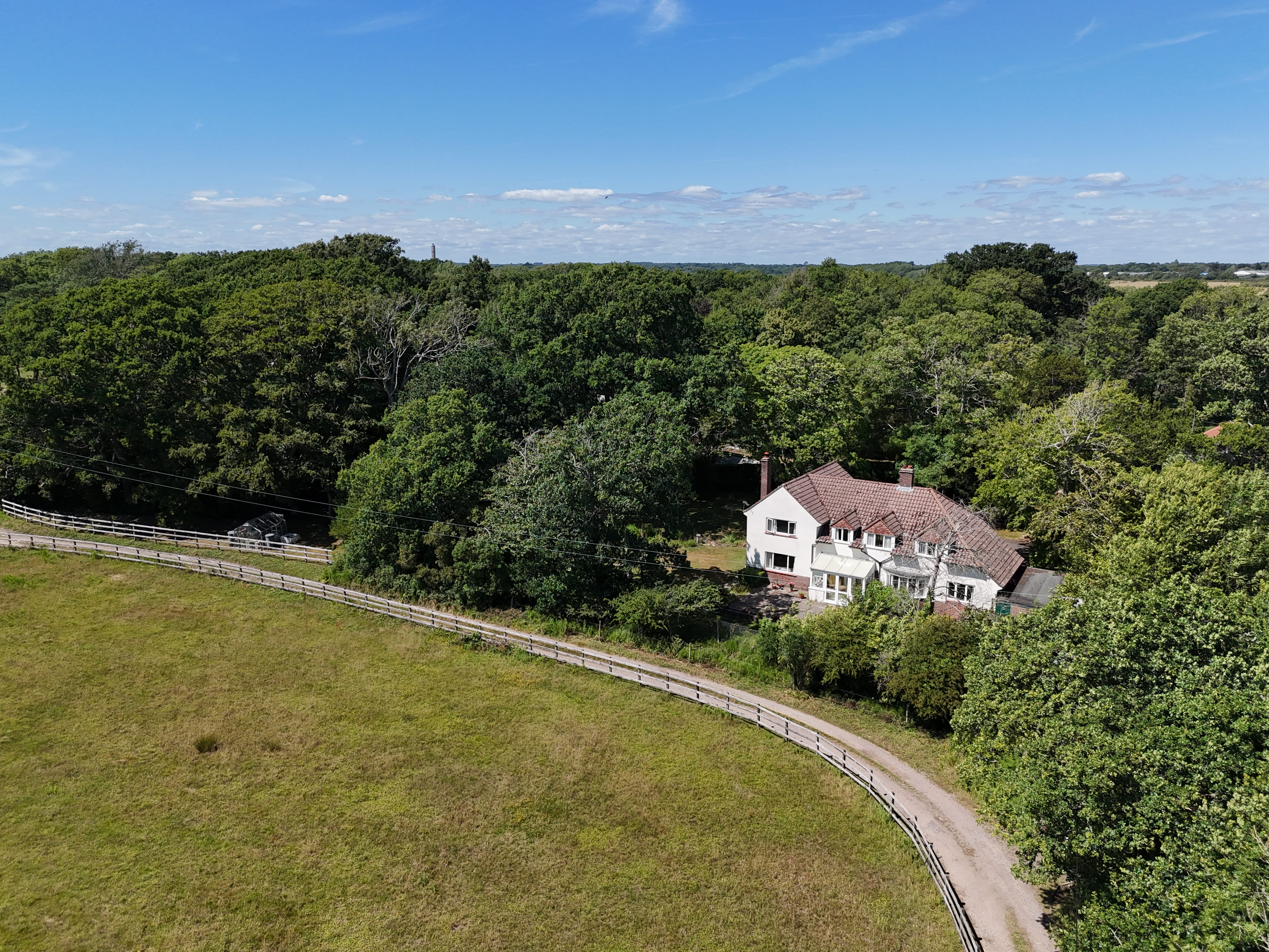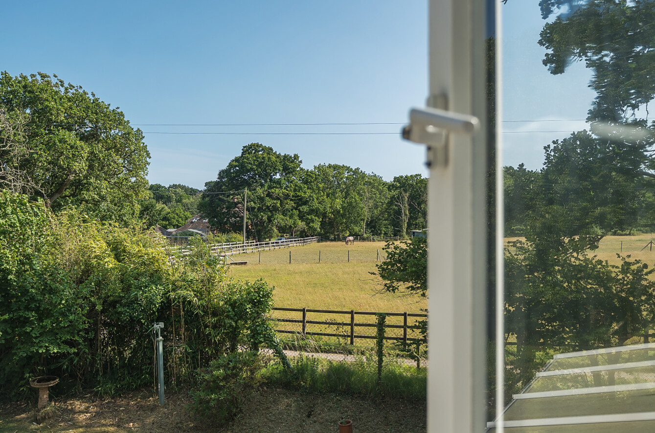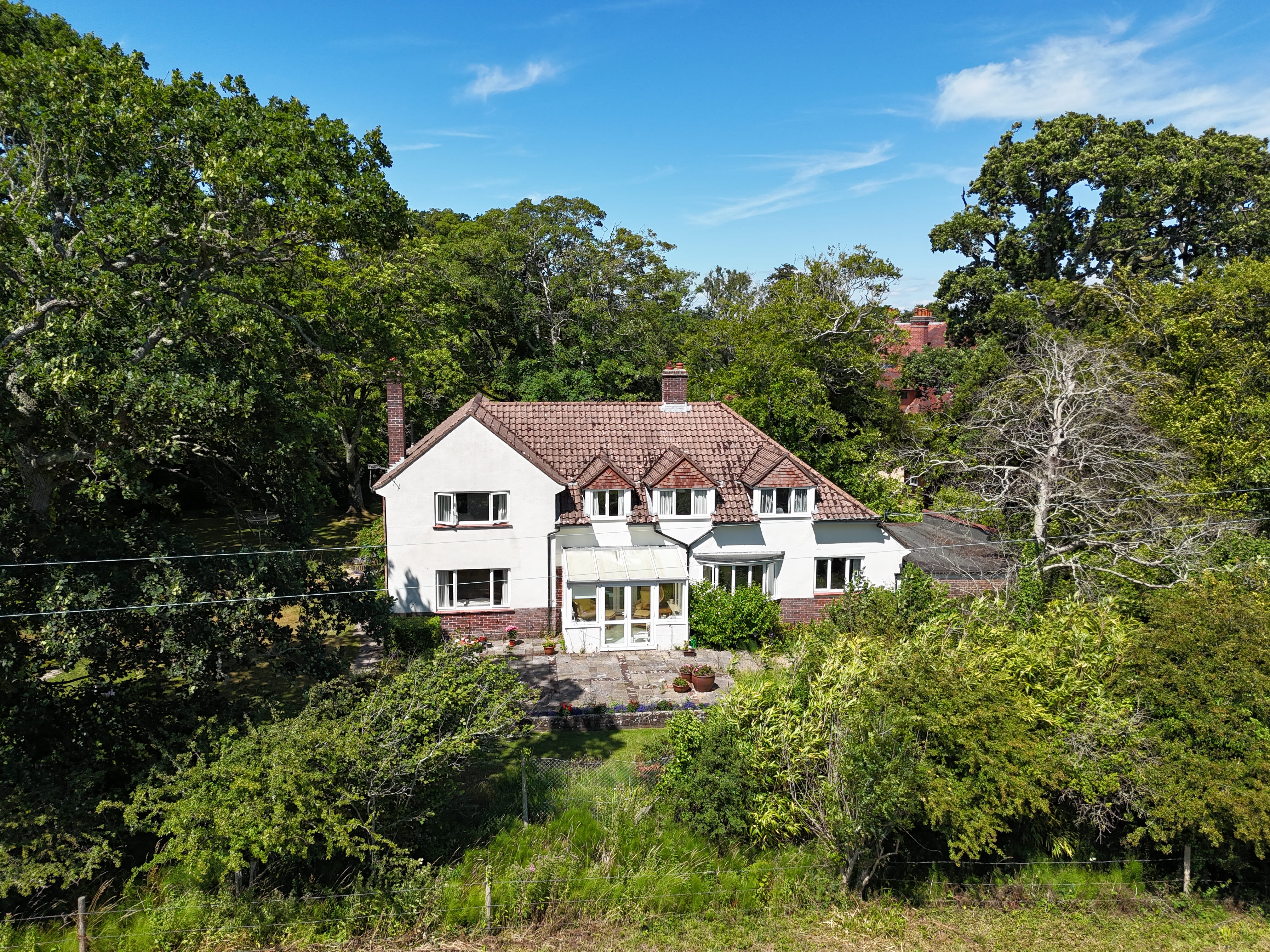 An extremely spacious family house offering privacy and seclusion with glorious southerly views over open fields, ample parking, garaging and a home office set within just under 1.2 acres of gardens and grounds including a beautiful coppice and vegetable garden.