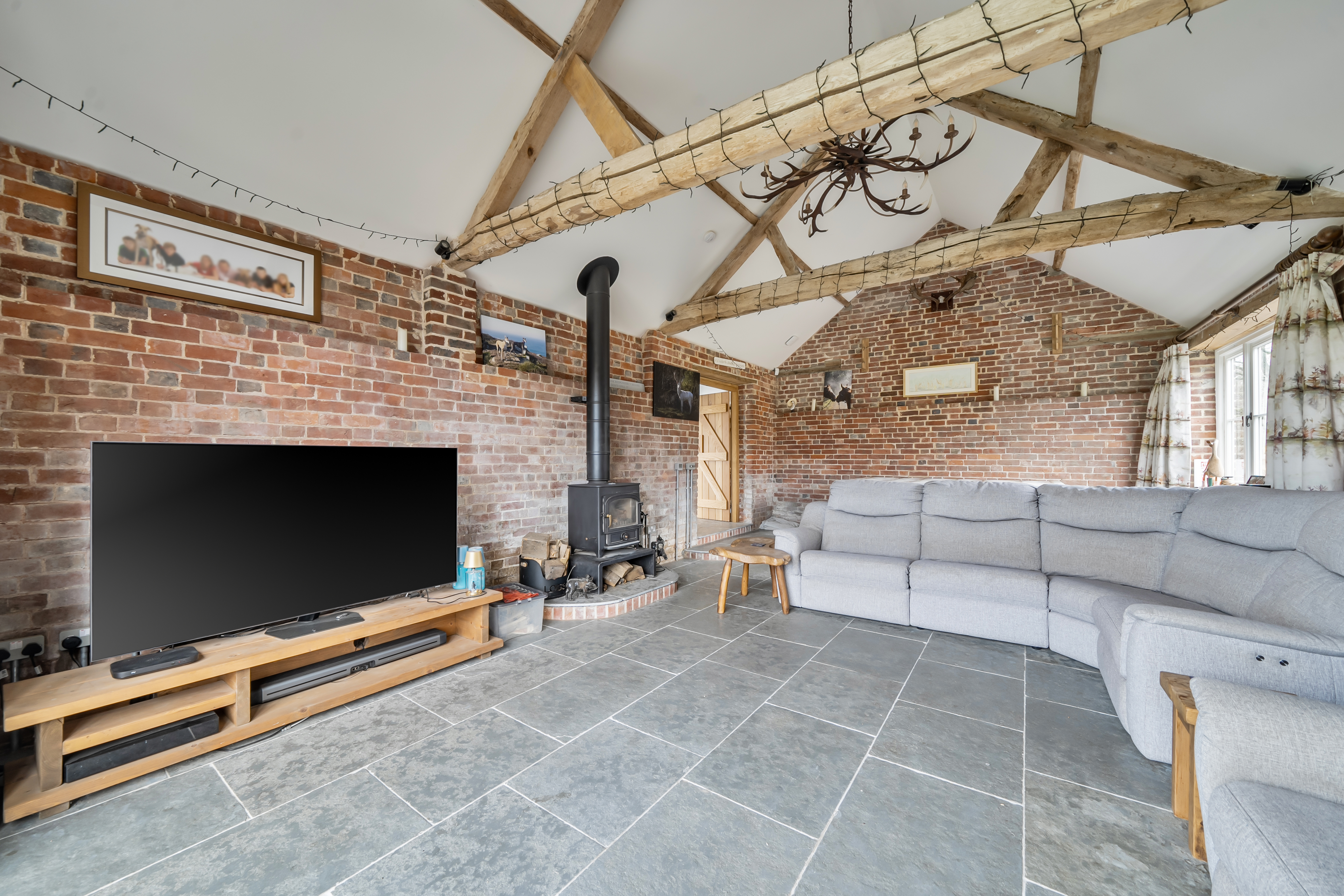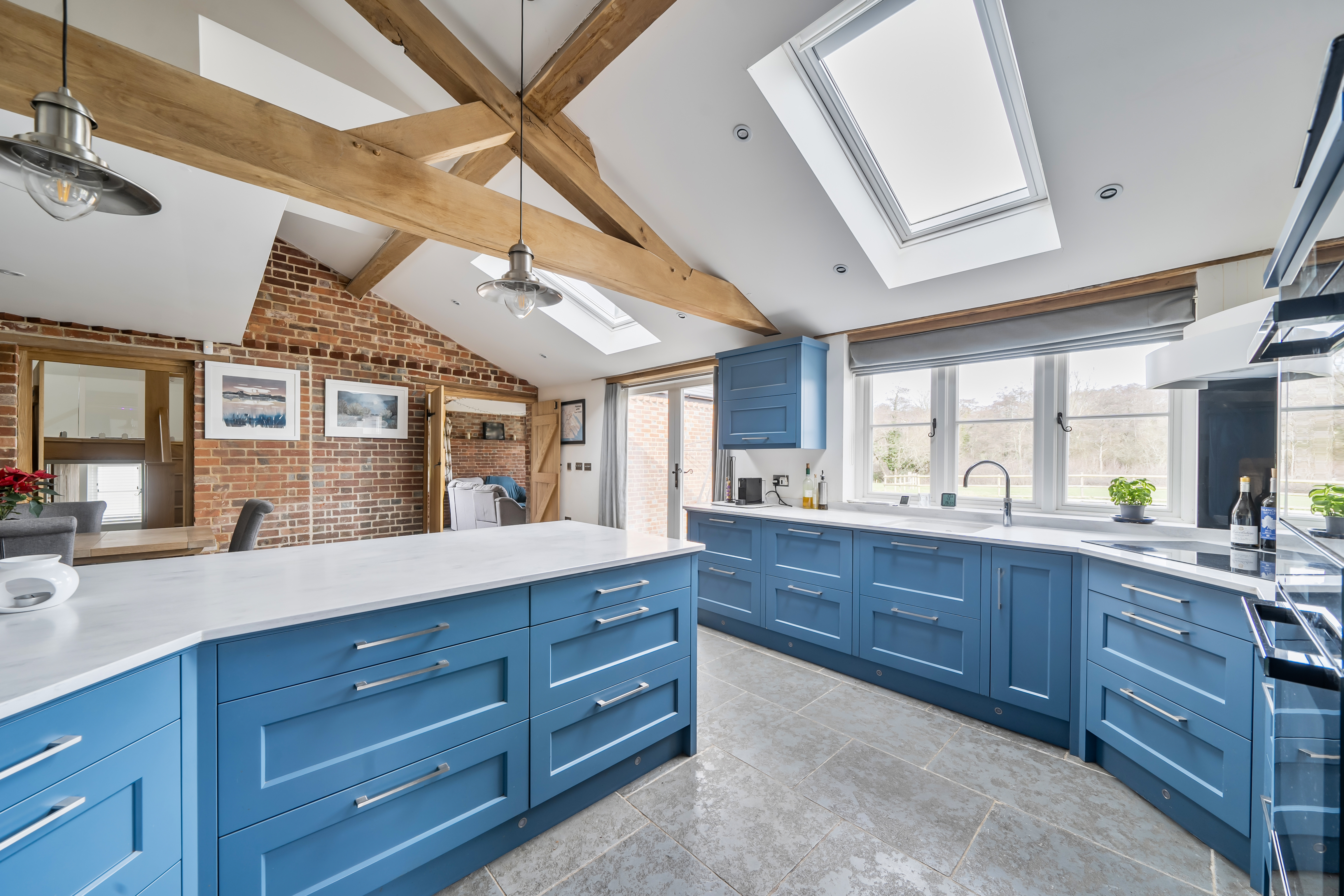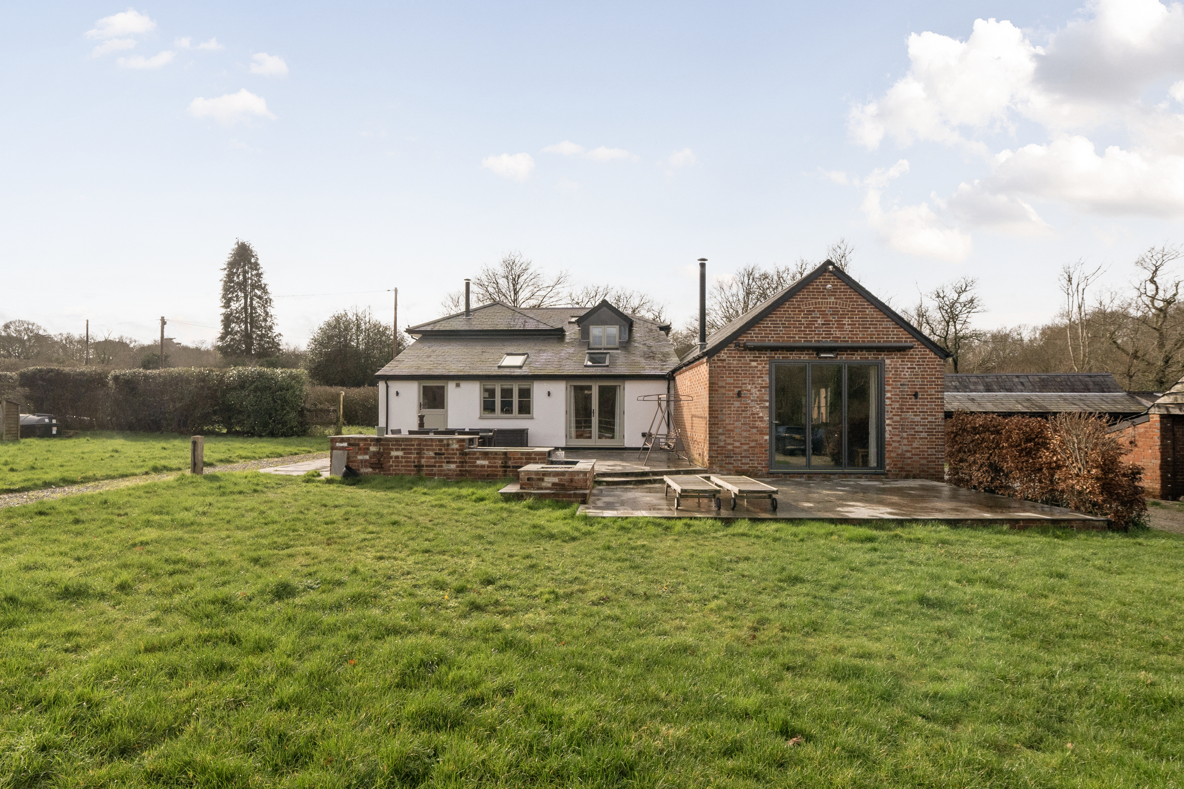 An exceptional country residence set in one of the New Forest’s most idyllic positions, Lower Mead End Farm is a beautifully restored five-bedroom farmhouse dating back over 200 years. Discreetly positioned within just under 6.5 acres of private grounds, the property has been meticulously renovated to an exacting standard, seamlessly blending period character with refined modern/contemporary living. Timber beams, vaulted ceilings and exposed brickwork sit effortlessly alongside bespoke finishes and high-specification fittings, creating a home of both warmth and understated elegance.