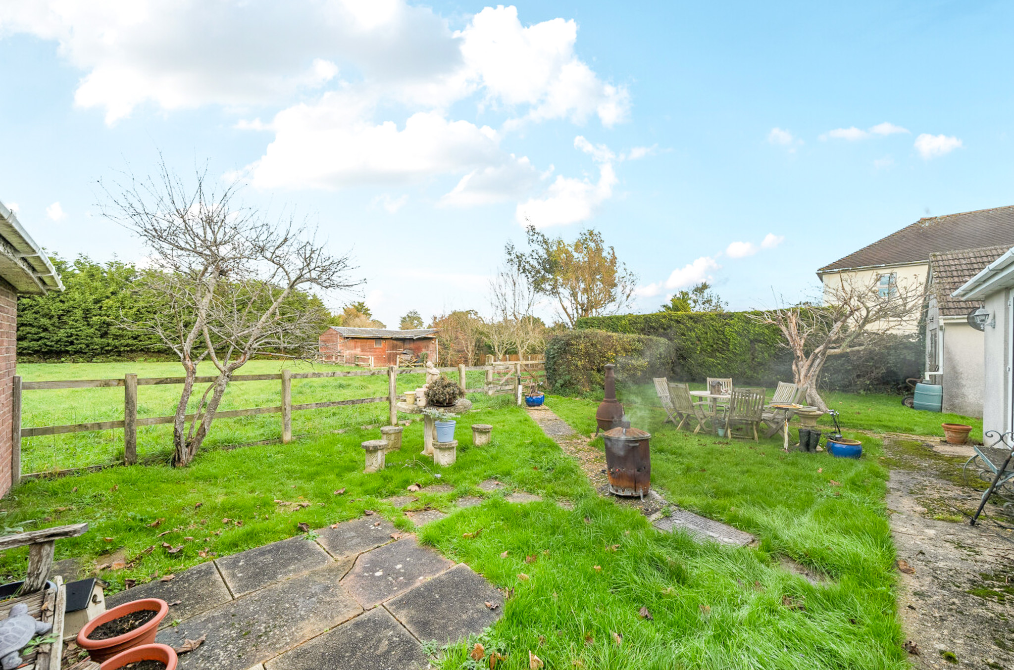 A fantastic opportunity to acquire this spacious four bedroom detached chalet style home, situated on a generous plot including a holding paddock and a selection of useful outbuildings. Located in a semi-rural forest village, just moments from the open forest. Offered to the market with no onward chain!